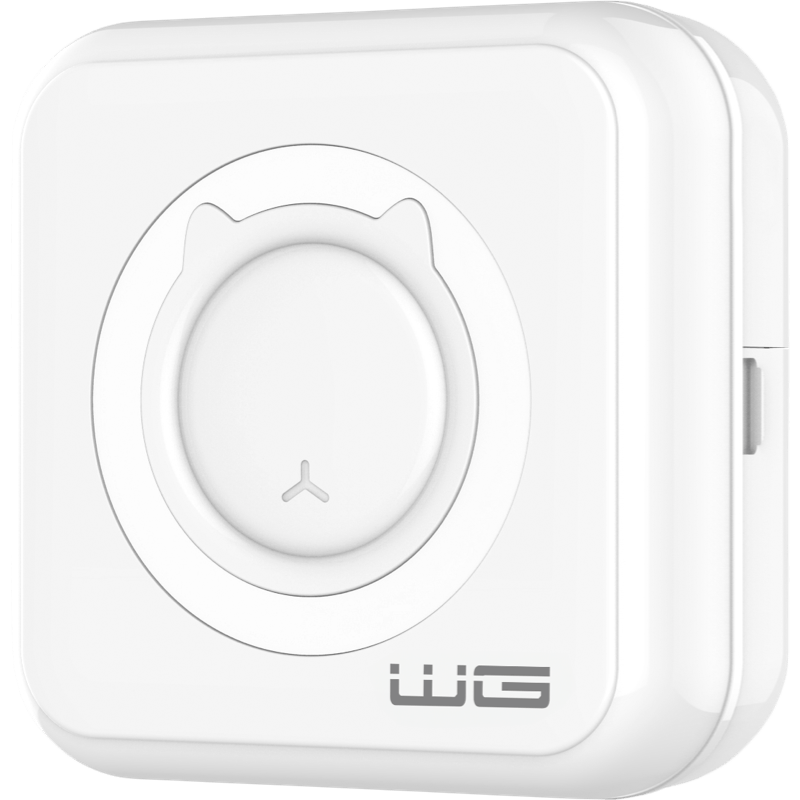 Mini drukarka WG termiczna do etykiet + pakiet rolek biała front prawy skos poprawione
