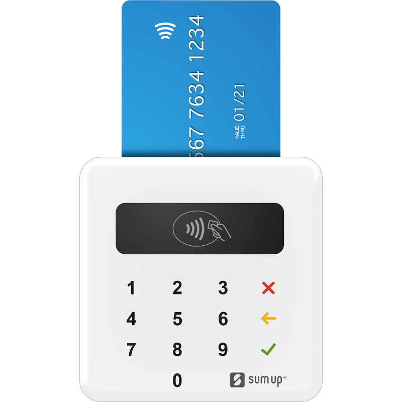 Sum Up to jedyny na rynku terminal zbliżeniowy do przyjmowania płatności kartami bez abonamentu i bez umowy z bankiem. Wystarczy kupić urządzenie w Orange, zainstalować darmową aplikację na swój telefon, zarejestrować się i od razu można przyjmować płatności w swojej firmie kartami. SumUp łączy się po bluetooth ze smartphonem.