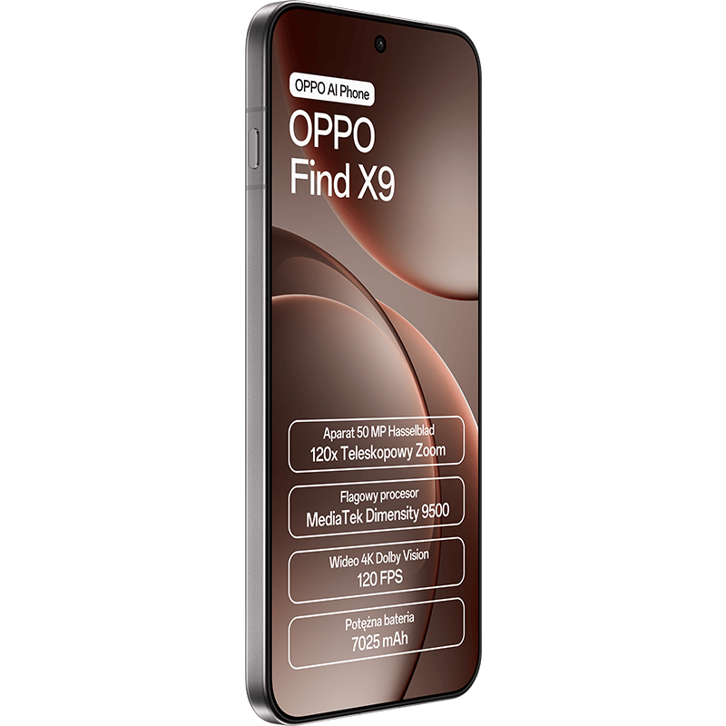 • OPPO Find X9 5G korzysta z systemu trzech obiektywów Hasselblad i matryc wysokiej klasy, które uchwycą każdą scenę z niesamowitą szczegółowością. 120× SuperZoom pozwala przybliżyć odległe detale bez straty jakości, a tryb Pro Portrait uchwyci dokładnie to, co najważniejsze – Twój wyraz twarzy, emocje, światło.