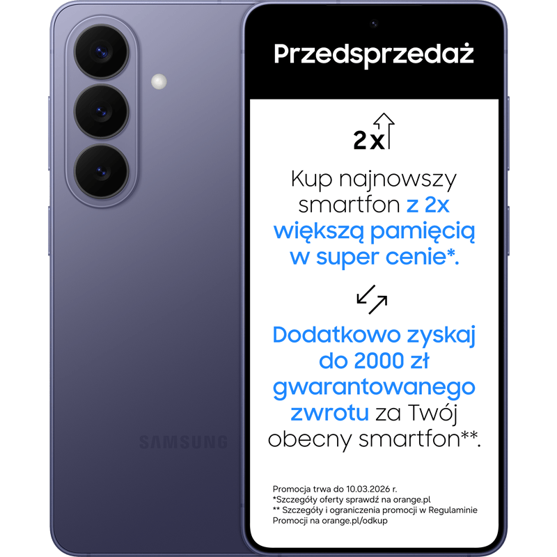 *Kwoty i modele odkupu ustala Organizator Programu Odkup - Breezy Poland. Zależą od modelu i stanu sprzedawanego urządzenia. 2000 zł (w formie elektronicznych bonów płatniczych) to minimalna kwota jaką otrzymasz przy odkupie Samsung Galaxy S24 Ultra (w każdej wersji pamięciowej) w stanie dobrym, bardzo dobrym, idealnym oraz przy zakupie nowego urządzenia z serii Samsung Galaxy S26 w terminie 25.02.2026 do 10.03.2026 r.